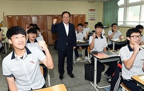 이날 김 교육감은 지산고 3학년 4반과 금정여고 3학년 5반 교실을 찾아 무더위 속에서 수능 공부에 여념이 없는 학생들을 응원했다.