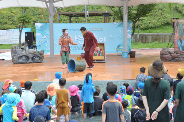 경기 동두천시 경기북부어린이박물관은 지난 2~3일 소요산어린이공원 물놀이장에서 여름방학을 맞이해 물을 주제로 퍼포먼스 공연을 개최했다. 이날 공연은 관객참여형 공연으로, 시원한 물놀이와 함께 야외극으로 진행됐다. 사진은 공연 진행 모습. (사진제공=동두천시청)