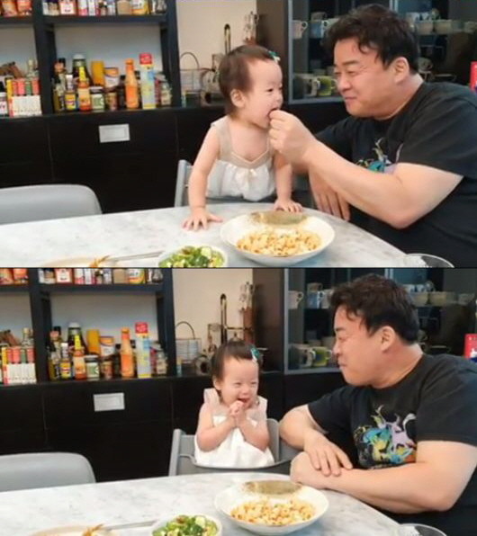 영상 속에는 백종원에게 과자를 먹여주는 세은 양의 모습이 담겨 있다. 백종원은 딸의 애교가 사랑스러운 듯 미소 짓고 있다. 아빠 백종원을 쏙 빼닮은 붕어빵 외모도 눈길을 끈다.