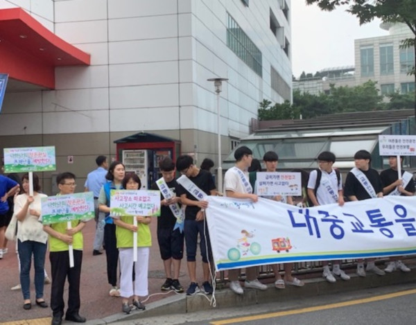 서울 동대문구가 최근 동대문구청 광장 및 홈플러스 동대문점 일대서 폭염대비 및 교통사고 발생방지, 대중교통 이용률 높이기 등을 위한 ‘안전점검의 날 캠페인’을 펼쳤다. 사진은 캠페인을 펼치고 있는 캠페인 참가자들의 모습. (사진제공=동대문구청)