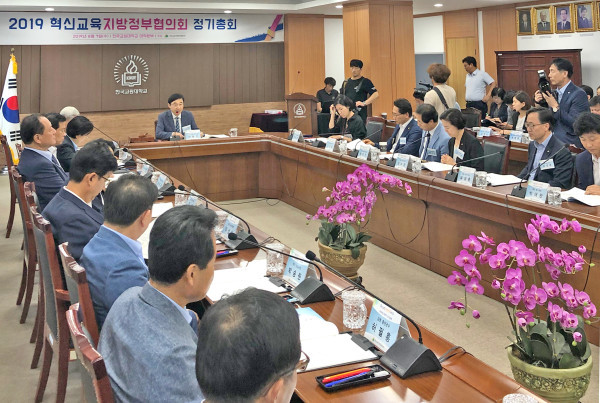 서울 도봉구는 7일 한국교원대학교에서 ‘2019 대한민국 교육자치 콘퍼런스’를 개최했다. 이번 행사는 교육 기관의 교육자치 추진 성과를 나누기 위해 마련됐으며, 9일까지 진행된다. 사진은 이동진 구청장이 회의를 주재하는 모습. (사진제공=도봉구청)