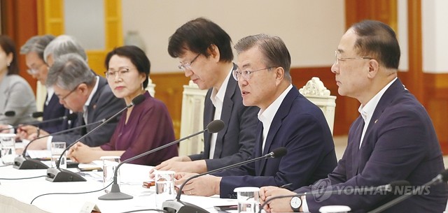 문재인 대통령이 8일 오전 청와대에서 일본 수출규제 대책 논의를 위한 국민경제자문회의를 주재하고 있다.