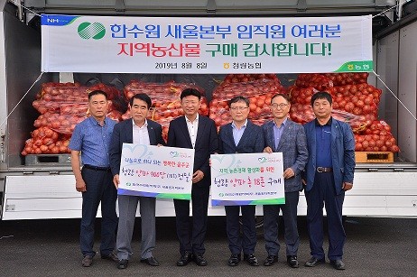 울주군은 8일 울주군청 중앙광장에서 한국수력원자력(주) 새울원자력본부 한상길 본부장(불참)과, 윤상조 대외협력처장, 문병용 농협 울산지역본부장, 김형진 울주군지부장, 박동섭 청량농협조합장과 양파작목반원이 참석한 가운데 1천만 원 상당의 청량 양파 20t 사주기 행사를 열었다.