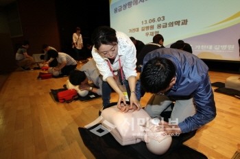 [시민일보]인천시 옹진군은 월례조회에 전 직원을 대상으로 실제 응급 상황이 발생하였을 경우 신속한 현장 초동 대처 능력으로 환자의 생존율을 높일 수 있게 심폐소생술 실습 교육을 실시하였다.