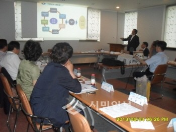 지난 4일 서울 마천2동 주민센터에서 송파구의회 권오철 행정보건위원장 주최 '주민중심의 주민자치' 간담회가 열렸다. 권 위원장이 주민자치위원장 대상으로 강의하고 있는 모습.