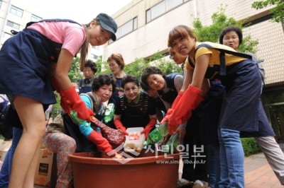 서울 중구가 13일 오전 10시부터 을지로6가 중구구민회관 옆 공원에서 '사랑의 장' 담그기 행사를 개최, 중구여성단체연합회원 30명과 중구에 살고 있는 다문화가정 10명이 함께 고추장을 담그고 있다. '사랑의 장'은 홀몸노인, 기초수급자 등 400가구에 전달됐다.