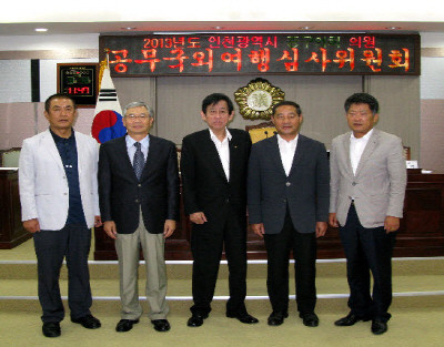 중구의회(의장 하승보)는 6월 12일 의장실에서 기존 위원 중 3명의 의원들을 해촉하고 공무국외여행 심의 위원회 신규위원으로 새롭게 위촉된 4명에게 위촉장을 전달했다. 사진은 관계자와 위촉된 위원들이 기념촬영하는 모습.
