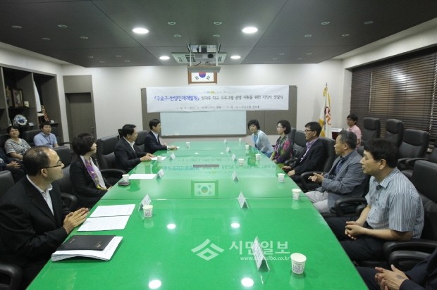 서울 구로구가 18일 교과부 지정 예비사회적기업인 한양인재개발원과 방과후 학교 운영지원 기탁식을 갖고 지역내 7개 초등학교에 방과후 학교를 지원키로 했다. 사진은 구로구 관계자와 한양인재개발원 관계자간 간담회 모습.