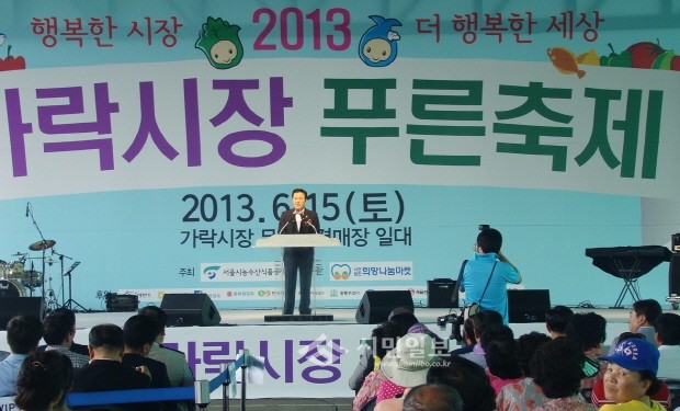 최근 '제3회 가락시장 푸른축제'가 서울 송파구 가락시장에서 열렸다. 박용모 송파구의장(가운데)은 이 행사에 참석해 가락시장 유통업 종사자들과 고객이 소통하고 화합하길 바란다고 축사했다.