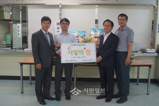 성남시 지역내에 근무하는 농협임직원으로 구성된 함께나눔 성남 사랑 농협봉사단(공동대표 한동희 이남규 김철수)는 지난 24일에 중원노인종합복지관을 방문하여 메트로칸 화재 피해 이재민들에게 사랑의 쌀 전달식을 가졌다.