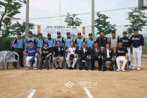 ▲ 지난 23일 ‘2013 인천광역시서구청장기 야구대회’가 서구 매립지 야구장에서 열렸다. 사진은 개회식에 참석한 야구 동호인들의 모습.