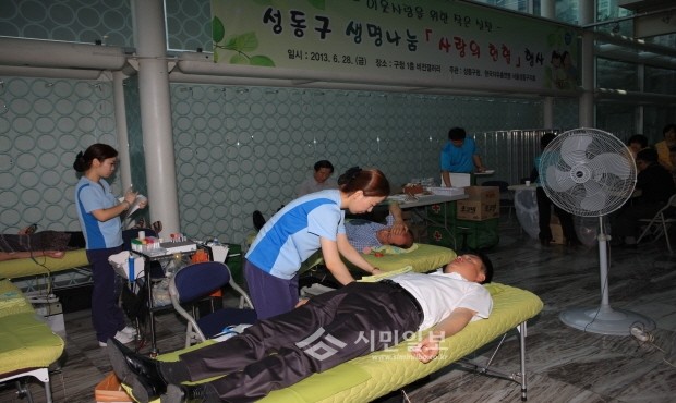 [시민일보]28일 서울 성동구청 1층 로비에서 '사랑의 헌혈'행사가 열렸다. 이날 성동구청 직원, 한국자유총연맹 성동구지회, 주민 등 100여명이 헌혈에 동참했다. 사진은 행사장 모습.
