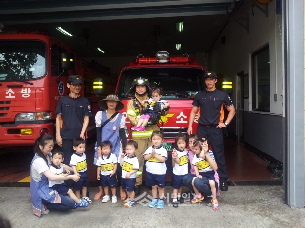인천중부소방서는 28일 중구 만석동에 위치한 만석어린이집 아이들 40여명을 소방관서로 초청해 친근한 소방이미지를 구현하고 안전문화의식의 저변을 확대하기 위한 체험견학을 실시했다.