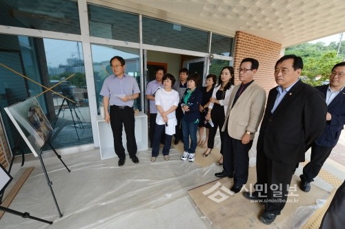 ▲ 오는 9일까지 제195회 정례회을 개회 중인 경기 오산시의회가금암도서관 등 지역내 현장을 방문해 운영현황을 살폈다. 오산시의원들이 브리핑에 집중하고 있는 모습.