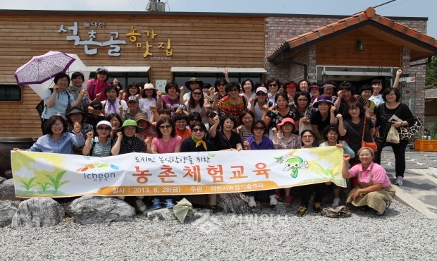 [시민일보]지난달 28일 이천시 농업기술센터는 도시민 60명을 초청해 농촌의 다원적 기능을 이해하고, 안전한 우리 농산물 소비 촉진을 위한 농촌체험교육을 실시했다.사진은 농촌체험교육에 참가한 참가자들의 모습.