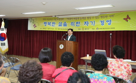 [시민일보] 지난 4일 서울 창신1동 주민센터에서 '제18회 여성주간 기념 행사'가 열렸다. 이날 여성의 행복을 주제로 한 특강도 함께 열렸다. 행사장을 방문한 종로구의회 김복동 의장이 축사하고 있는 모습.