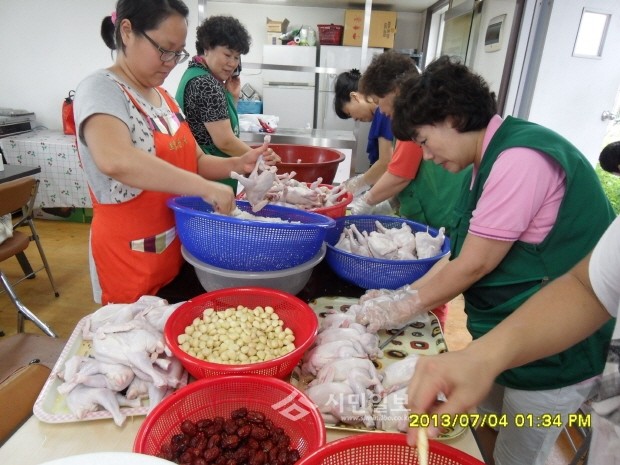 지난 4일 성동구(구청장 고재득) 금호1가동 새마을부녀회와 직능단체 회원들이 거동이 힘든 어르신과 중증장애인 150세대에 삼계탕을 배달했다. 가가호호 삼계탕을 배달하는 이 행사는 3년 전부터 이어져오고 있다. 사진은 삼계탕용 닭 손질중인 모습.