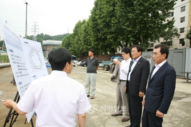 지난 9일 도시건설위원회(위원장 김학진) 위원들은 오전 10시부터 강남역 8번 출구 앞 강남역 하수암거 현장과 서초2동 1324-1 용허리공원과 사당역 환승주차장 공사현장내 저류조 공사현장을 방문하여 서초구청 재난치수과장 및 관계자로부터 공사 진행사항 및 집중호우 대비책 등을 브리핑 받은 후 현장점검을 실시하였다. 사진은 브리핑 하고있는 모습.