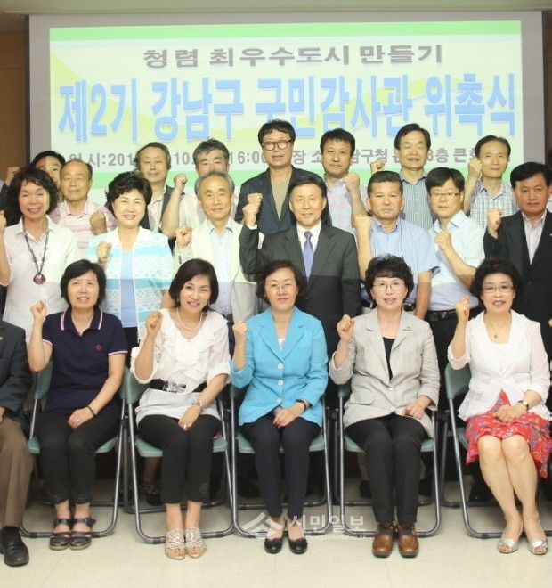 지난 10일 강남구(구청장 신연희)는 구청 본관 큰 회의실에서 ‘구정의 파수꾼’으로 활동할 ‘제2기 구민감사관’ 위촉식을 가졌다. 구민감사관은 2년 동안 공공사업 감독 등의 활동을 할 예정이다. 사진은 위촉식 모습.