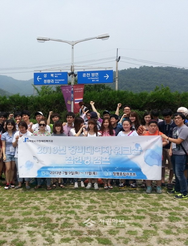 [시민일보]관악구 봉천동 실로암시각장애인복지관에서는 9~11일 청평풍림리조트에서 2박3일간 시각장애대학생의 취업준비를 위한 자기탐색 및 직업능력파악, 직장생활에 필요한 적응기술 등을 제공하는 ‘잡 헌팅(Job-Hunting)캠프’를 실시하였다. 사진은 캠프 참가자들이 기념촬영하는 모습.