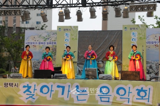 [시민일보]지난 12일 평택시 청북면에서는 주민자치위원회와 함께 청옥초등학교 운동장에서 ‘청북면 자선 희망 나누기 찾아가는 음악회’를 개최했다. 이번 행사의 수익금 전액을 난치성 희귀병을 앓고 있는 전예지 학생에게 전달했다.사진은 부채를들고 노래를 하고있는 참가자들의 모습.