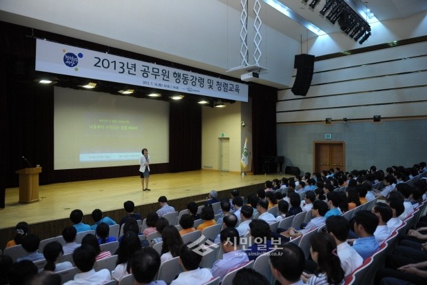 [시민일보]16일 중랑구는 공무원들을 대상으로한 '전직원 대상 청렴교육 실시' 교육을 실시했다. 사진은 박연정 강사가 교육진행하고 있는 모습.