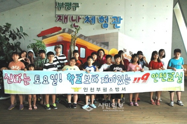[시민일보]지난 20일 인천부평소방서는, 부평구 보아스지역아동센터 학생 30여명을 대상으로 화재 등 각종 안전사고를 예방하기 위해 '토요119안전체험 아카데미'를 운영했다고 밝혔다. 사진은 아카데미에 참가한 보아스지역아동센터 학생들이 기념사진을 촬영하고있는 모습.
