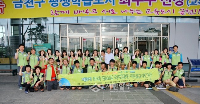 [시민일보]지난 19일 금천 청소년 국제환경 자원봉사단은 오후 4시 구청 광장에서 봉사활동 발대식을 갖고 몽골 바양노르솜 '금천희망의 숲'으로 오는 26일까지 봉사활동을 떠났다. 사진은 발대식 후 단체기념촬영을 하는 모습.