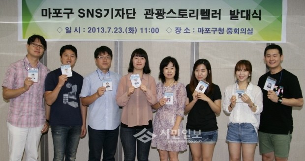 지난 23일 마포구(구청장 박홍섭)는 관광객의 눈높이에 맞는 양질의 관광정보 콘텐츠를 확장하기 위해 10명의 SNS기자단으로 구성된 ‘관광스토리텔러’발대식을 가졌다. 사진은 발대식후 관광스토리텔러 멤버들의 기념촬영 모습.