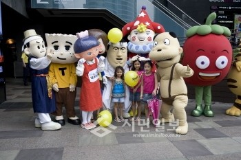 | ▲ 2010년 서울국제만화·애니메이션 축제인 서울국제만화애니메이션 페스티벌(SICAF)이 진행한 캐릭터 퍼레이드에서 두 아이들이 캐릭터들과 함께 기념촬영을 하고 있다. | ||
