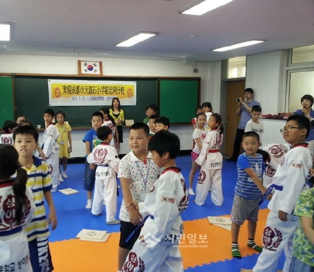 지난 25일 인천계양초등학교 상야분교에 중국 사천성 성도시 천아석소학교소충사분교 학생들이 방문해 소충사 분교의 강족 전통 무용 공연과 상야분교의 태권도 시범을 보이는 시간을 보냈다.