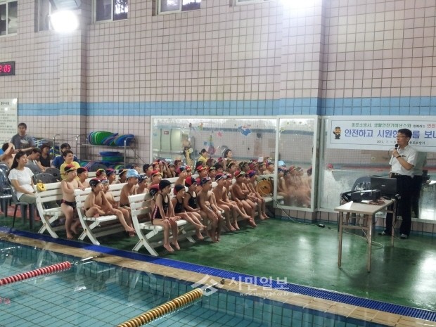 지난 29일 서울 종로구(구청장 김영종)는 종로소방서와 함께 지역내 지역아동센터를 이용하는 어린이들을 대상으로 재난안전교육에 들어갔다. 사진은 재난안전교육을 받고있는 아이들의 모습.
