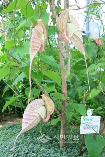 2일 아산시에 따르면 한여름의 곤충원에는 꽃의 모양이 펠리칸을 닮았다고 해 붙여진 펠리칸플라워가 30일간격으로 피어나고 있어 이색 꽃을 찾는 관람객들에게 큰 인기다.