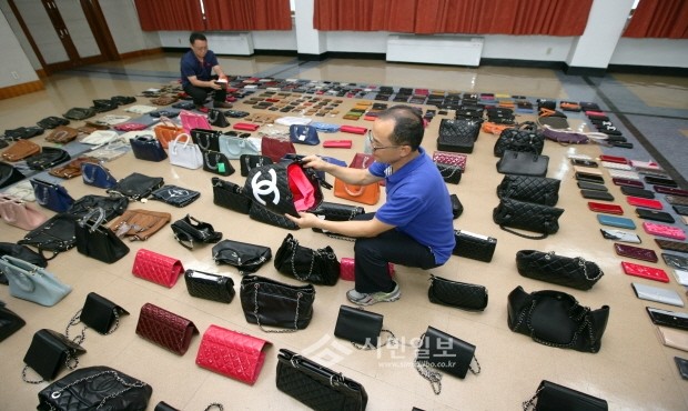 지난 12~14일 서울 중구 상표권수사 특별사법경찰은 명동과 동대문패션타운 주변 관광객을 대상으로 짝퉁 호객영업을 한 5명을 검거하고 가짜 명품 793점(정품가 24억원)을 압수해 검찰에 기소의견으로 송치했다. 사진은 압수된 명품가방의 모습.