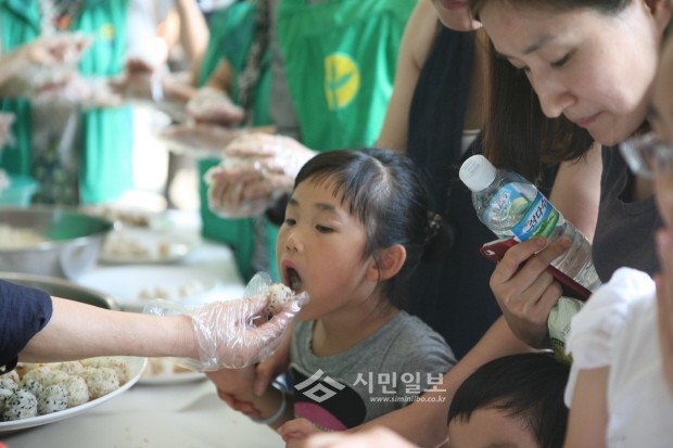 강동구는 19~22일까지 실시한 을지연습 기간 중 주민들을 대상으로 안보의식을 높이기 위해 주먹밥 시식회, 한국전쟁사진전, 6·25 전사자 유해발굴 사진 및 유품 전시회 등의 다양한 행사를 진행했다. 사진은 21일 열린 주먹밥 시식회에서 주먹밥을 먹고 있는 어린이의 모습.