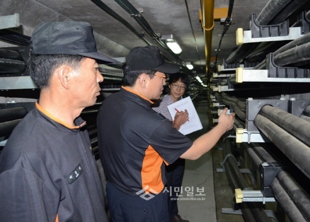 서울 남동소방서는 화재발생 시 전기·통신 등 중요시설의 피해 확대로 화재 초기 대응능력 향상에 만전을 기하고자, 28일 지역내 만수분기전력구에서 민·관 합동 소방훈련을 실시하였다. 사진은 중요시설 체크하는 모습.