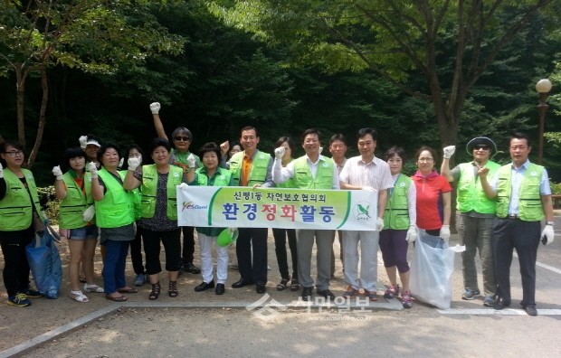 28일 구미 신평1동에서는 자연보호협의회주관으로 기산면에 위치한 금화사에서 단합대회와 환경정화 활동을 펼쳤다. 사진은 신평1동 자연보호협의회 여름철 쓰레기 정화활동 후 기념촬영 하는 모습.