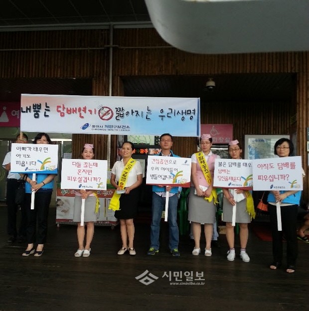 [시민일보]지난 13일 경기 용인시 처인구보건소는 추석명절을 맞아 이용객이 많은 시외버스터미널과 고속도로 휴게소에서 깨끗한 귀성길 맞이 금연 특별지도단속과 캠페인을 했다. 사진은 용인시외버스터미널에서 피켓을 들고 캠페인을 하는 모습.
