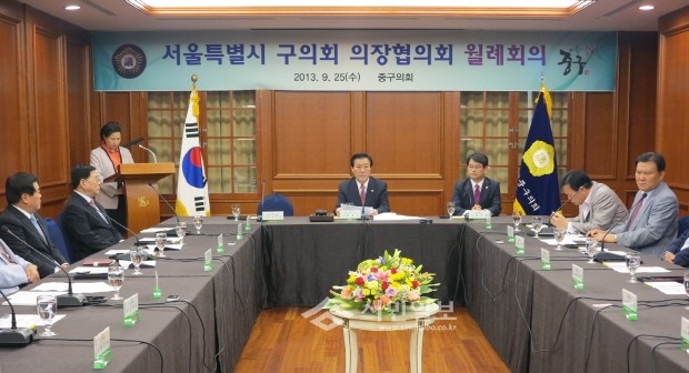 서울 서울특별시구의회의장협의회는 지난 25일 중구 의회에서 '서울특별시구의회의장협의회 9월 월례회의'를 개최하고 '2014 전국동시지방선거에' 대비해 서울시 전체 구의원 선거교육 세미나 개최에 대한 안건심의와 함께 제1회 지방자치의 날 기념식과 지방자치발전 세미나에 대해 의견을 나눴다.