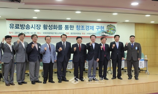 홍익인간연구 모임 주관, 시민일보, 사회안전방송 후원으로 열린 이날 정책토론회에서 홍문종 의원은 환영사를 통해 “유료방송산업은 방송산업이 다른 산업분야에 미치는 영향을 고려해볼 때 그 자체로도 창조경제의 핵심 산업”이라며 “고도의 창의성을 전제로 하기에 현 정부에서 추진하고자 하는 창조경제 패러다임의 선구자 역할을 맡고 있다. 특히 업체 간 치열한 신기술경쟁으로 제고된 경쟁력은 고스란히 소비자 혜택으로 이어지게 될 것”이라고 밝혔다.