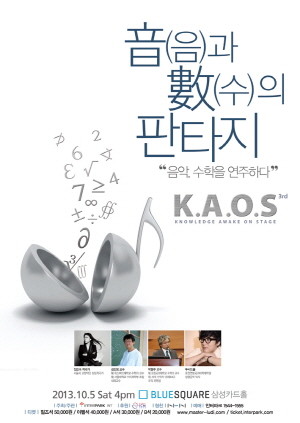 오는 10월 5일 서울 한남동 블루스퀘어에서 열리는 ‘2013 K.A.O.S 音(음)과 數(수)의 판타지’는 수학과 음악의 관계와 연계된 사례를 재미있게 소개하는 토크콘서트다.