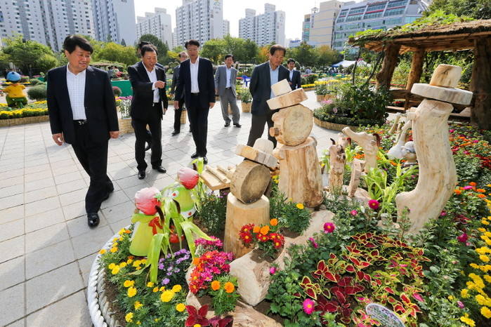 인천 계양구가 오는 15일까지 아트갤러리, 구청 광장, 미래광장거리에서 국화꽃 향을 만끽할 수 있는 가을꽃 전시회를 연다. 구청 광장에서 열린 전시회에서 구민들이 가을꽃의 정취를 만끽하고 있다.