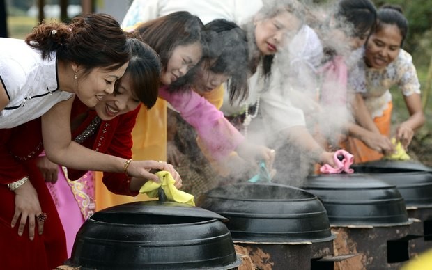 [시민일보] 제15회 쌀문화축제 성공기원을 위한 가을 걷이 한마당 축제가 열린 이천시 대월면 자채방아마을에서 다문화가정 여성들이 가마솥에 쌀밥을 짓고있다.