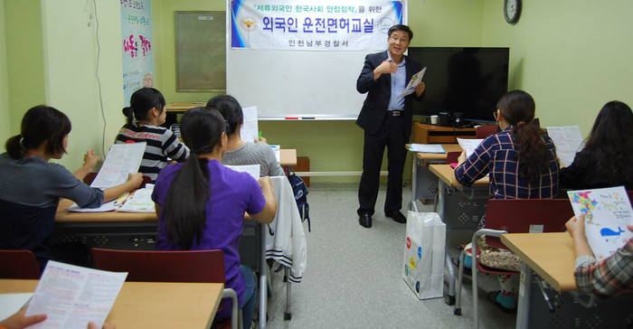 이번 교육에서 운전면허 이론 강의와 도로교통법, 경범죄처벌법 등 기초질서 지키기 교육을 실시했으며 한국어가 서툰 외국인들을 상대로 한 보이스피싱과 다문화 가정폭력에 대해 사례를 통해 설명하고 그 예방법을 설명했다.