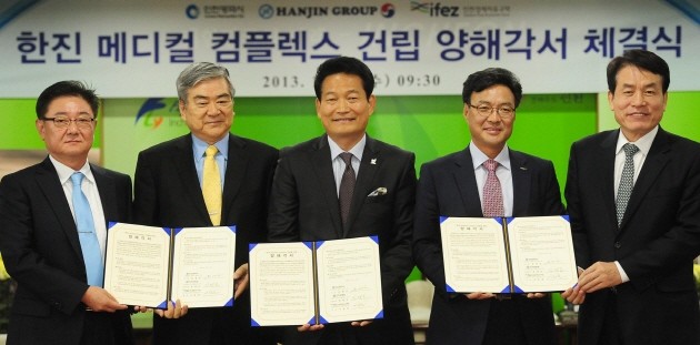 인천시는 16일 청사에서 송영길 시장, 조양호 한진그룹 회장, 이종철 인천경제청장, 김영모 인하대의료원장 등 관계자들이 참석한 가운데 '한진 메디컬 콤플렉스(Hanjin Medical Complex)' 추진을 위한 양해각서(MOU)를 맺었다고 밝혔다.