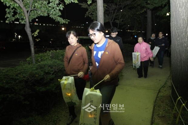 서울 구로구가 지난 16일 구로거리공원에서‘제1회 구로구 생명사랑 초롱불 걷기 행사’를 개최했다. 사진은 행사에 참여한 주민들이 초롱불을 들고 걷고 있는 모습.