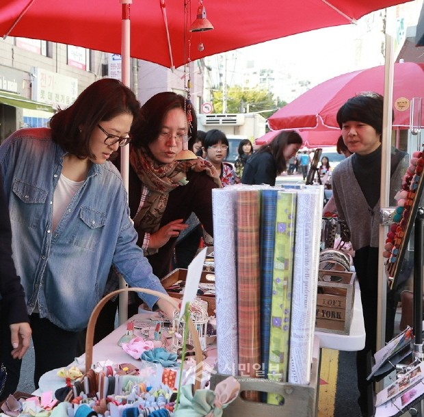 서울 서초구(구청장 진익철)는 지난 18일부터 20일 3일간 방배사이길에서 '제3회 방배사이길축제'를 개최했다.사진은 축제에 참여한 주민들이 재활용품을 이용한 수공예품을 구경하는 모습.