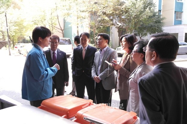 [시민일보]서초구의회(의장 최병호)의 행정복지위원회(위원장 강성길)는 지난 21일 서초구와 강남구의 음식물쓰레기 종량제 실시 현장을 시찰했다. 사진은 강남구 소재 한 아파트 현장방문 모습.
