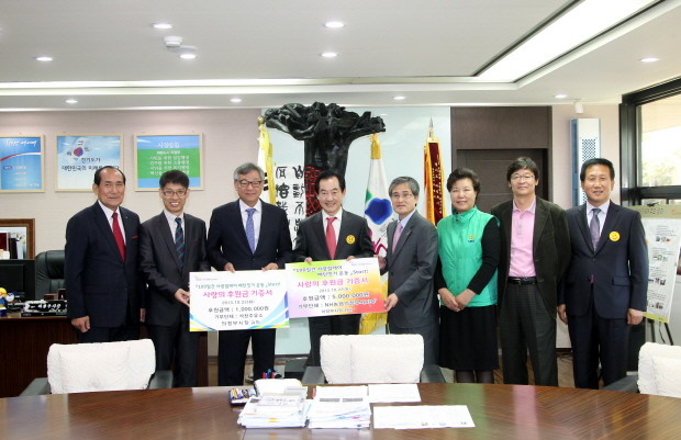 [시민일보]경기 의정부시는 지난 22일 이웃돕기 캠페인 “2013년 100일간 사랑릴레이 배턴 잇기” 사업을 시작했다. 이번에 후원 받은 600만원은 11월14일 ‘김장나누기, 행복곱하기’ 나눔 축제에 쓰일 예정이다. 사진은 후원금 기증식 모습.