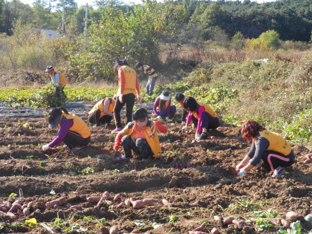 [시민일보]지난 22일 오산시 초평동 통장단협의회는 지역내 벌음동 고구마 밭에서 불우이웃돕기 사랑의 고구마 캐기 행사를 실시했다. 사진은 초평동 통장단 회원들이 고구마를 캐고 있는 모습.